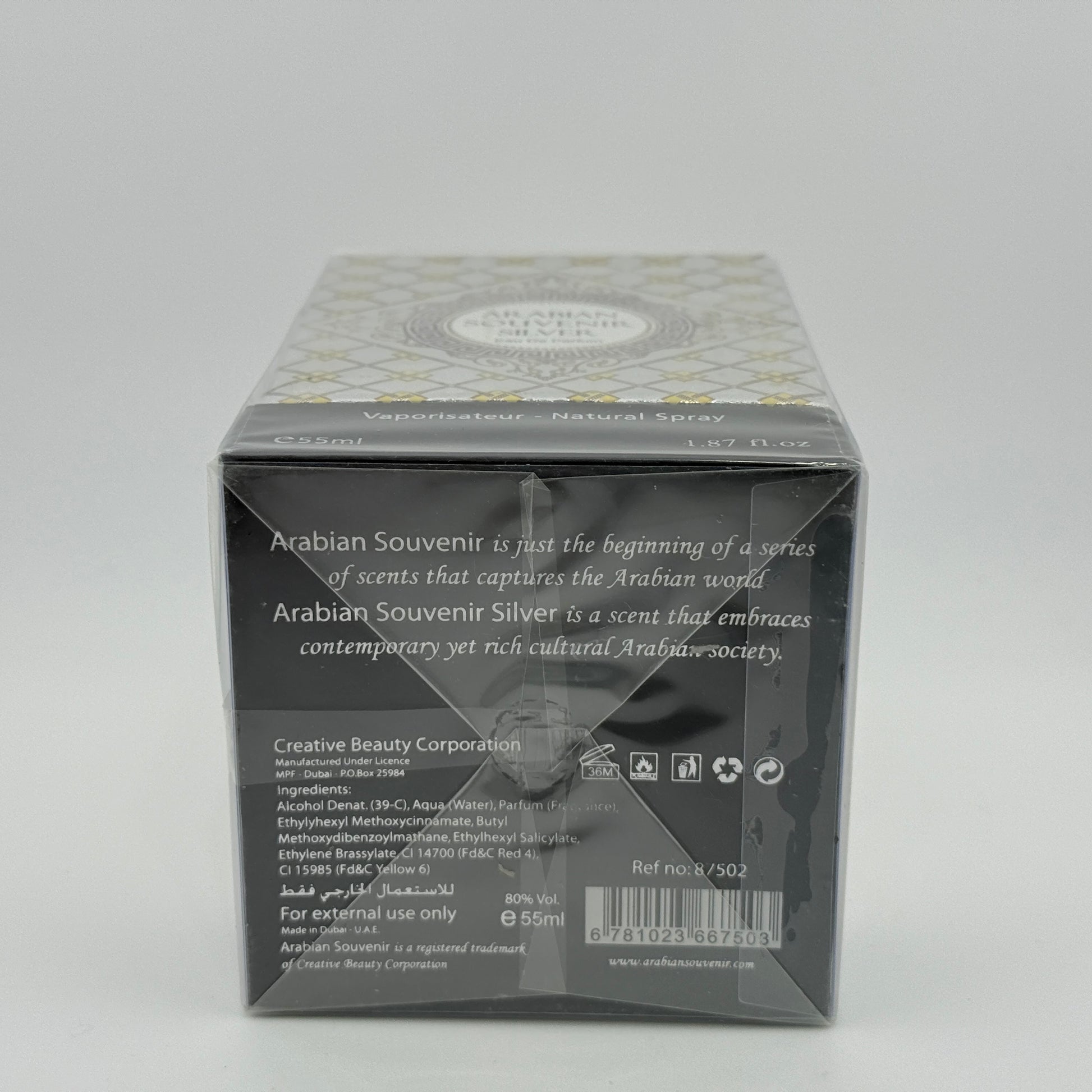 Arabian Souvenir Silver captures the essence of modern Arabian elegance in a luxurious eau de parfum. This 1.87 fl.oz (55 ml) spray blends contemporary sophistication with rich cultural heritage, creating a versatile fragrance perfect for evening wear and special occasions. The fresh, refined composition makes it ideal for cooler months when deeper scents truly shine. Presented in a pristine cellophane-packed box, it's an exceptional choice for those seeking a signature scent that honors tradition while embracing modern sensibilities.