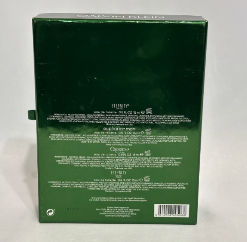 This Calvin Klein 4-piece mini set for men includes four iconic Eau De Toilette splashes, each in a convenient 15 ml size. Experience the timeless freshness of Eternity, the vibrant allure of Euphoria, the warm intensity of Obsession, and the invigorating aquatic notes of Eternity Aqua. Perfect for sampling or travel, this set offers a versatile collection of sophisticated scents designed to suit different moods and occasions.