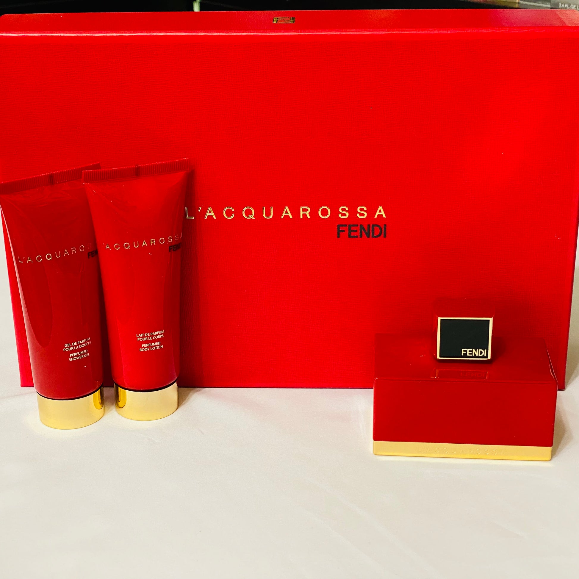 Discover the allure of Fendi L'Acqua Rossa, a rare and coveted fragrance for women. This exclusive 3-piece set features 2.5 fl.oz each of eau de parfum spray, perfumed body lotion, and shower gel. L'Acqua Rossa captivates with its fresh, aquatic composition—perfect for warm weather and daytime wear. The crisp, invigorating notes make it ideal for spring and summer occasions, from casual outings to sophisticated events. This hard-to-find collection offers a complete fragrance experience, layering scent for lasting elegance and luxury.
