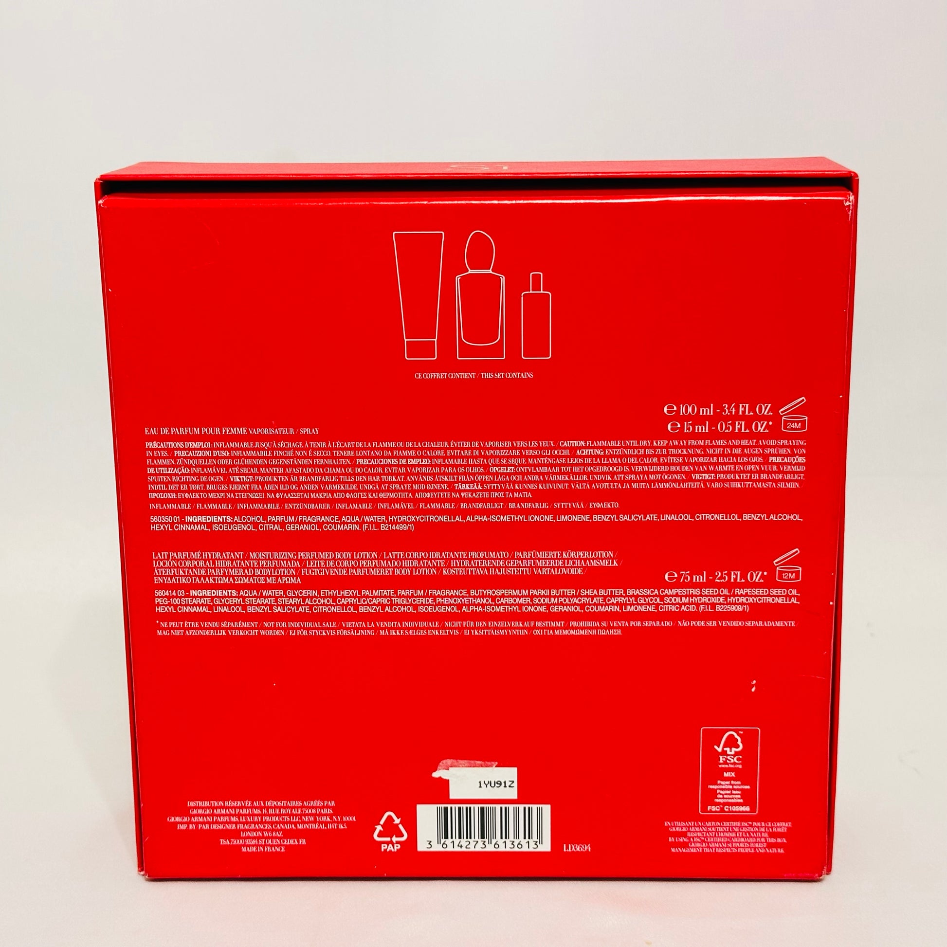 Si Passione by Giorgio Armani captures the essence of passionate femininity with its intoxicating blend of freesia, pear, and ambroxan. This luxurious three-piece set includes a full-size 3.4 oz eau de parfum spray for everyday wear, a convenient 0.5 oz travel atomizer for on-the-go touch-ups, and a 2.5 oz perfumed body lotion to layer and extend the fragrance. Best worn during warm seasons and romantic evenings, Si Passione's fruity-floral composition shines in spring and summer. The elegant hard display box makes it an ideal gift for the woman who appreciates sophisticated, sensual fragrances.