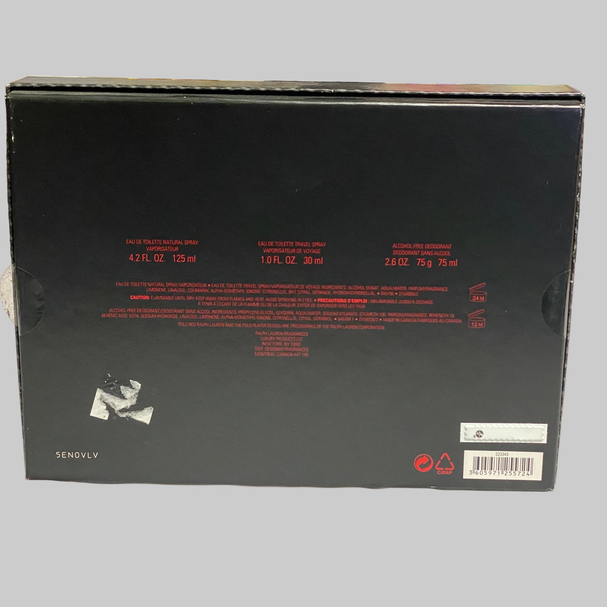 POLO RED by RALPH LAUREN 3 PIECE GIFT SET - 4.2 OZ EAU DE TOILETTE SPRAY, 1.0 OZ EAU DE TOILETTE SPRAY, 2.6 OZ DEODORANT for MEN