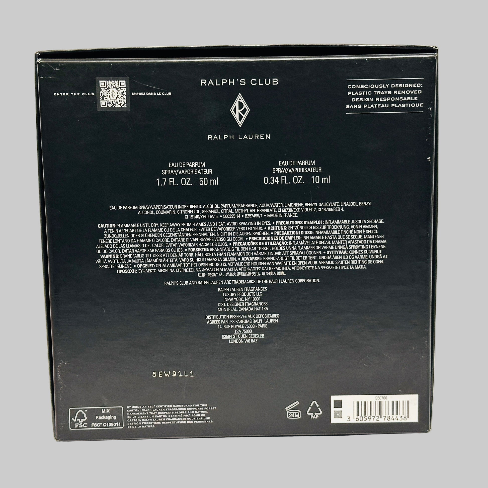 Experience the refined essence of Ralph's Club by Ralph Lauren with this 2-piece set, featuring a 1.7 fl. oz. and a travel-friendly 0.34 fl. oz. eau de parfum spray. Ideal for cooler weather and evening events, this scent blends warm, spicy notes with subtle woodiness, creating a sophisticated and inviting aura. Perfect for social gatherings and special occasions, it leaves a lasting impression. The set is brand new, though the box shows slight shelf wear.